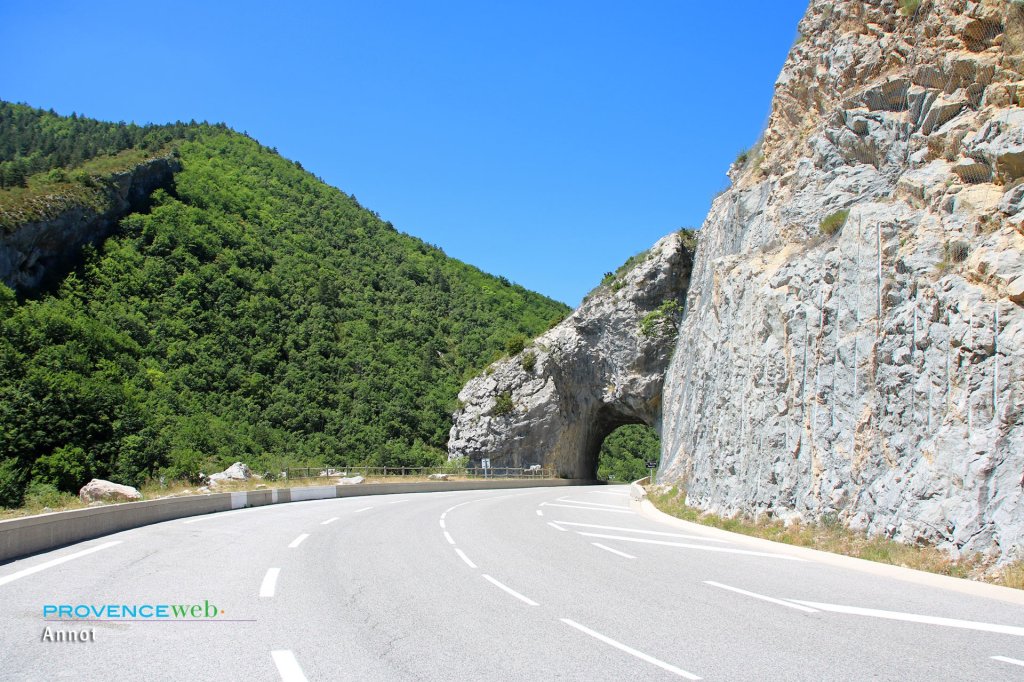 At equal distance between Nice and Digne on route N202.