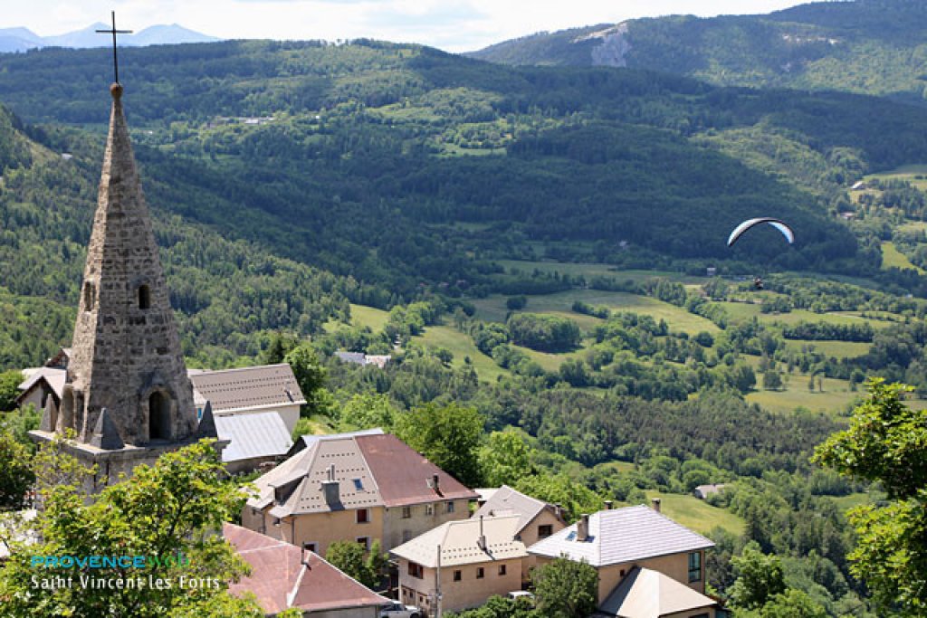 Once you have admired the grandiose panorama to your hearts content, take a stroll through the village of St Vincent Les Forts: You will be welcomed at the entrance by a friendly "mountain inn" and its shaded terrace, before climbing a few streets as far as the church with its square bell tower.