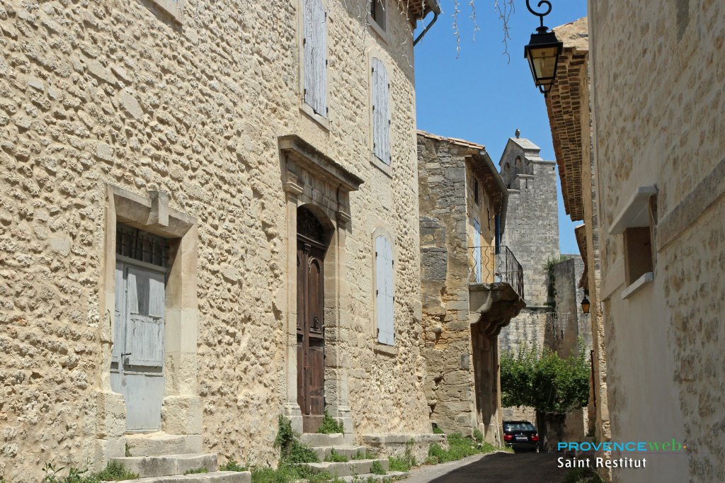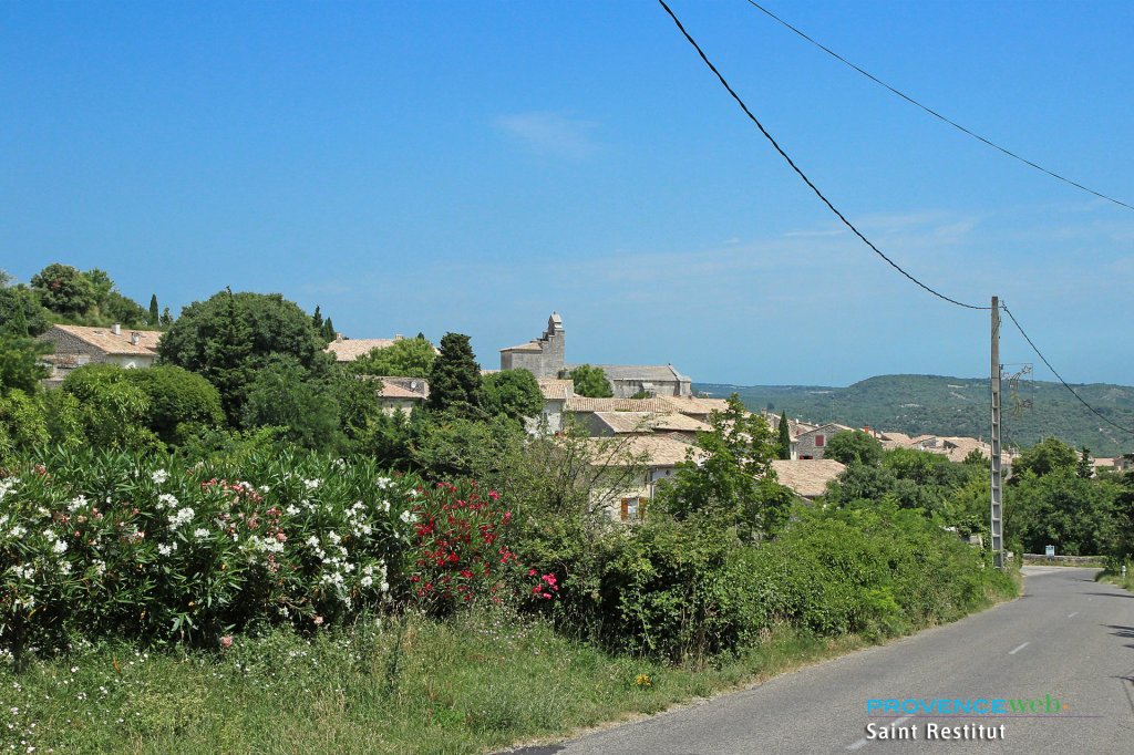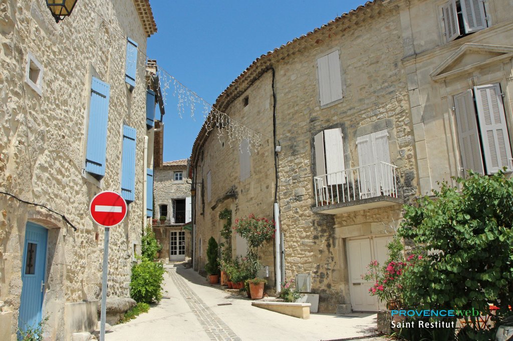 After a little road winding through the maquis, lulled by the song of the cicadas, you enter the village of Saint Restitut perched on a small hill, after crossing an old bridge.