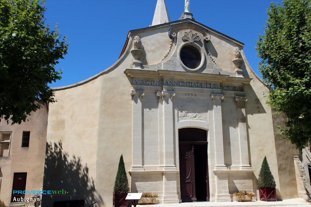 A little further along on the Place du Chateau de Pazzis is the primitive semi-Romanesque and semi-Gothic style church of Aubignan, just in front of a car park.