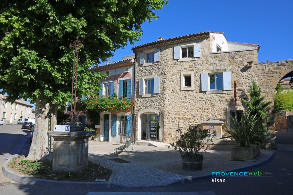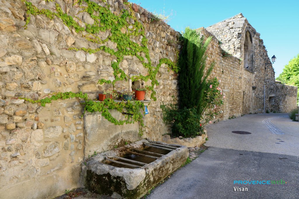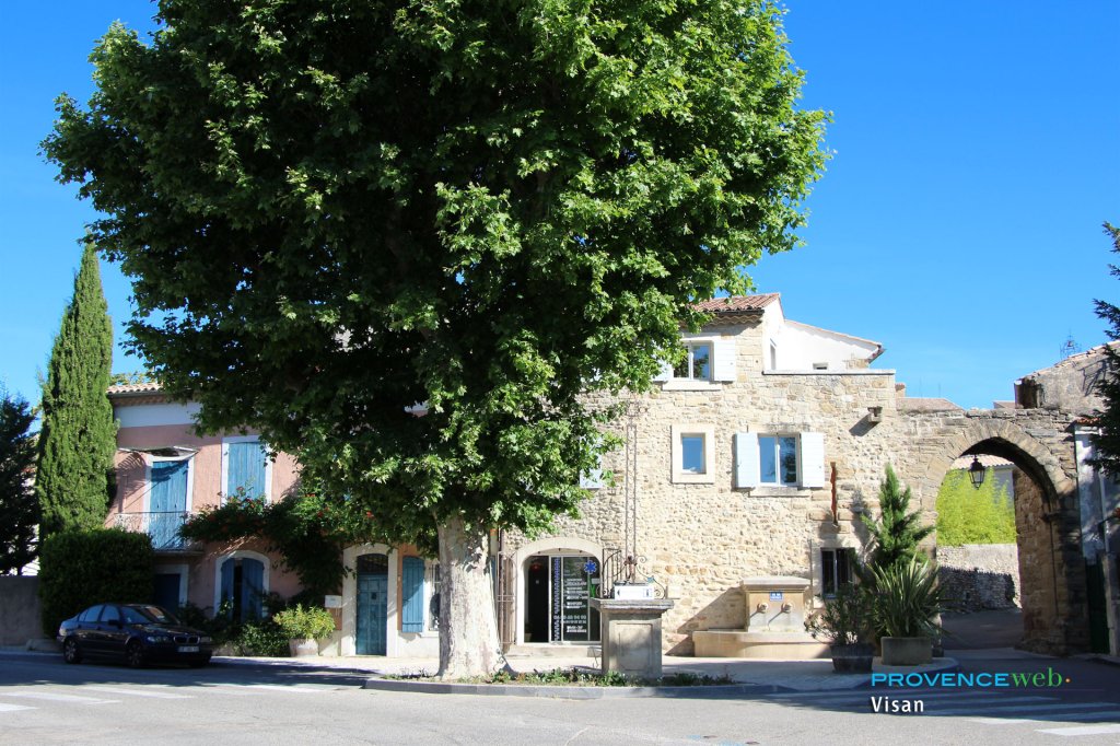 Visan dominates a vast plain of fields and vineyards which produce a well-known wine.