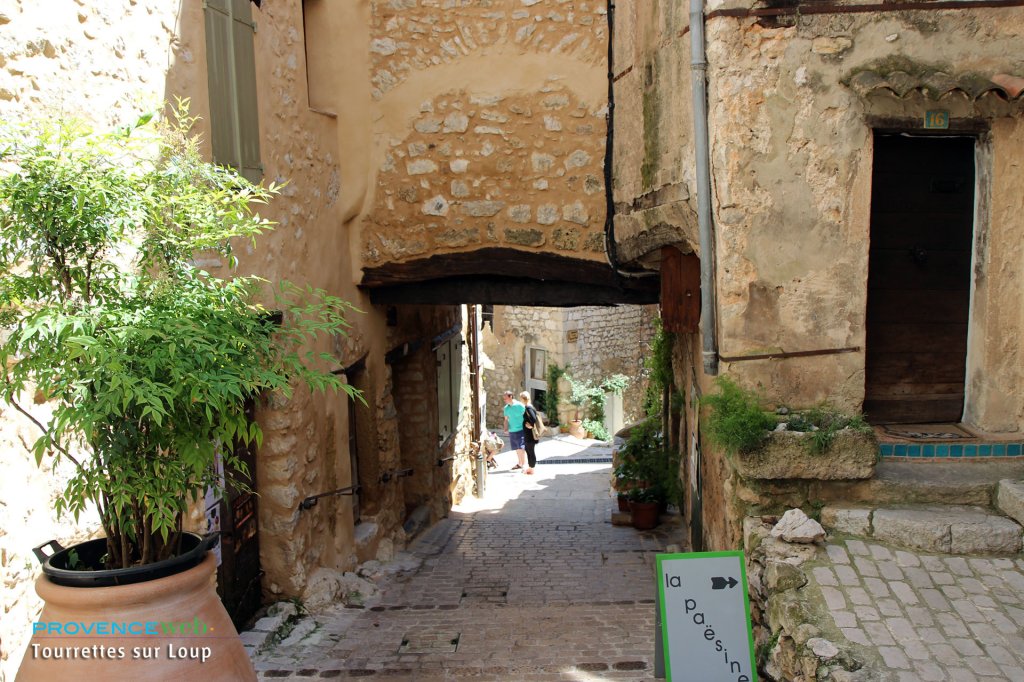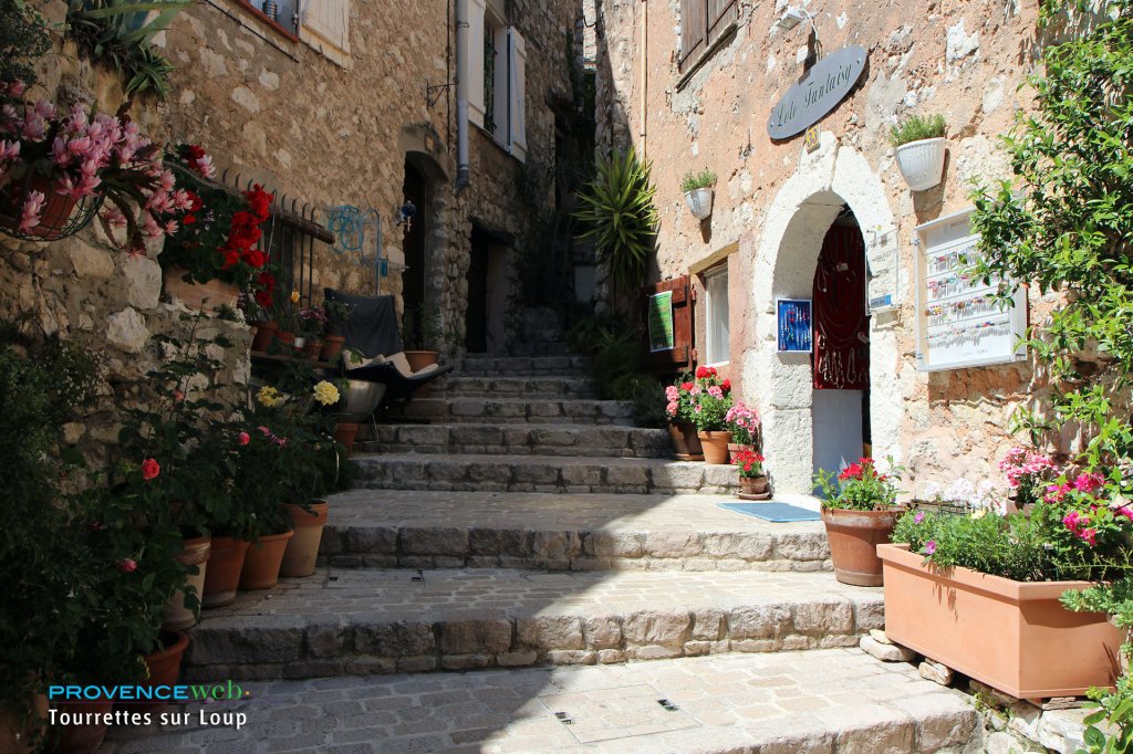 Tourrettes sur Loup se découvre en flânant doucement et tranquillement dans ses jolies petites ruelles, ses passages voûtés, ses vieilles façades de pierres restaurées avec goût, ses escaliers bordés de fleurs...