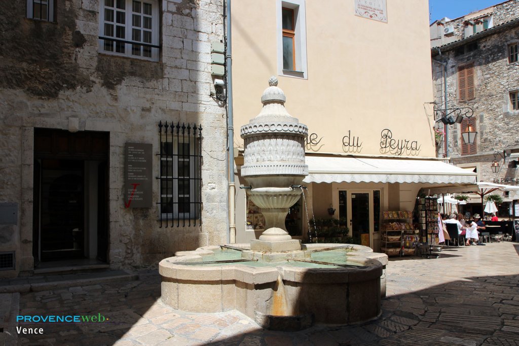 Plus loin encore, vous pourrez vous désaltérer à la Fontaine de la Foux, d'où coule, depuis l'époque médiévale (1431), une eau minérale naturelle d'une grande pureté. Avec son microclimat béni des Dieux, ses collines d'oliviers et d'agrumes, de chênes blancs et verts, de pins d'Alep, ses jardins luxuriants parfumés au romarin et à la lavande, ses baous majestueux et son Col de Vence où l'on respire un air si pur, Vence a plus d'un atout pour vous séduire.