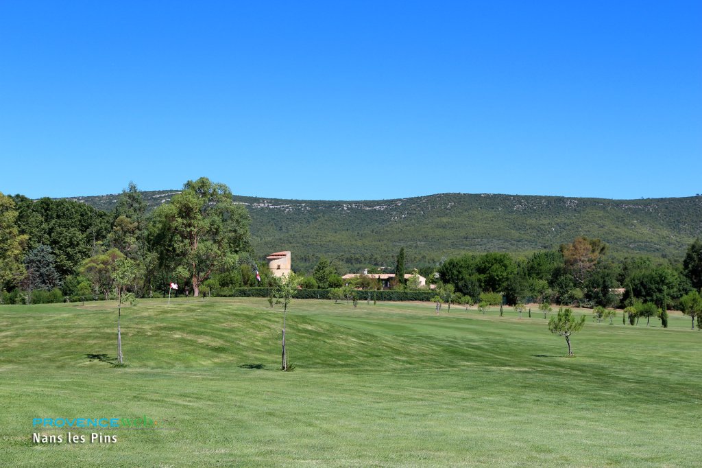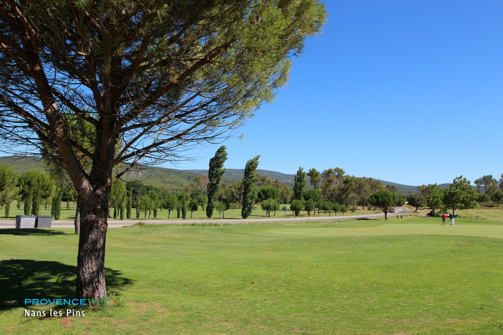 Avant d'arriver au village, vous découvrirez le golf de Nans les Pins qui s'étale superbement sur un parcours de 6.167 m avec son gazon vallonné et son green parfait. Puis, quelques virages plus loin, cette jolie petite route vous conduira au centre du village.