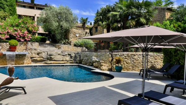 Location de charme pour 6 personnes conçue et meublée avec soin. Piscine avec vue panoramique sur le Luberon, sur un terrain de 1,5 hectares
